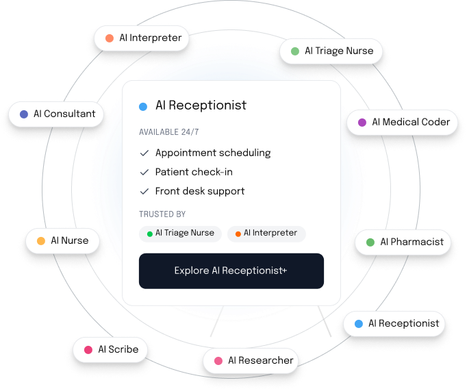 AI scribes, receptionists, medical coders, and triage nurses running 24/7.